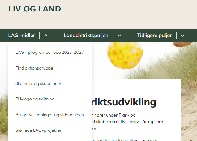 Ved at trykke på pilen ved LAG-midler, får I nu direkte adgang til de undersider der knytter sig til LAG.