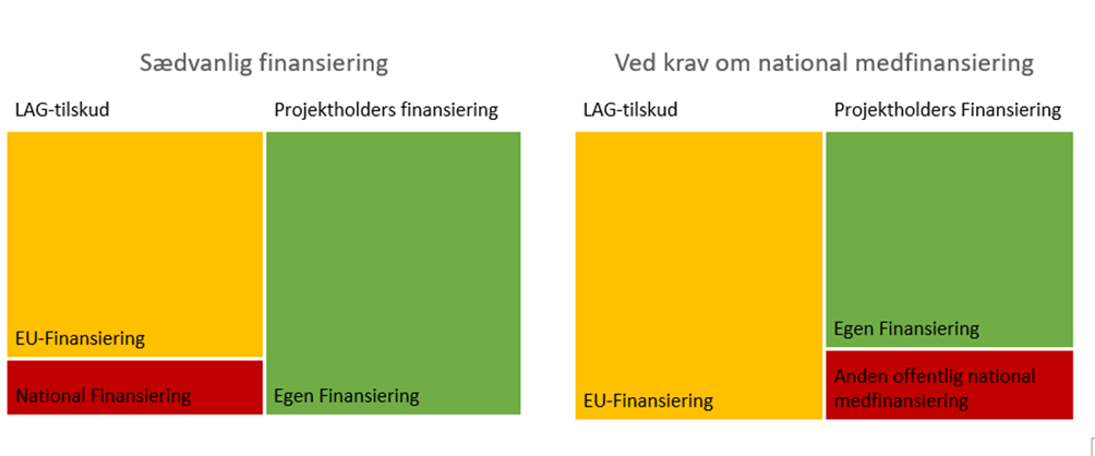 LAG-tilskuddet består normalvis af 80 pct. midler fra EU og 20 pct. nationale midler fra staten.
